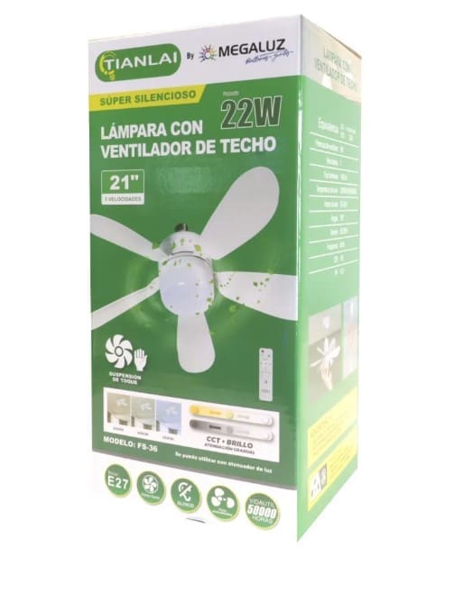 Este ventilador de techo con luz combina funcionalidad y diseño en un solo producto. Fabricado con materiales resistentes como plástico y acrílico 🛠️, cuenta con 5 aspas rígidas y giratorias contenidas en un diseño moderno. Ofrece 3 velocidades ajustables para adaptarse a tu ambiente 🌬️ y es ideal para interiores 🏠. Incluye luz integrada, brazo conector, y manual de usuario para una instalación rápida y sencilla.